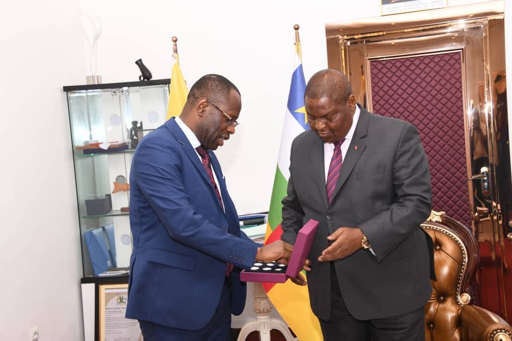 Aux côtés du Gouverneur, la délégation de la BEAC comprenait Ali Chaibou, Directeur National de la BEAC-RCA, Martin Eyavo et Achille Zogo Nkada, respectivement Directeur et Directeur adjoint de l’Émission Monétaire et de la Circulation Fiduciaire. Côté centrafricain, le Président de la République était assisté du Ministre d’État et Directeur de Cabinet, Obed Namsio, ainsi que du Ministre conseiller en matière de finances, Lazare Dokoula.