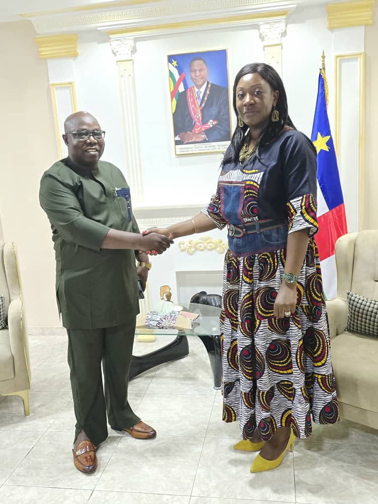En marge de ces échanges techniques et diplomatiques, le Ministre PIRI a tenu à rendre une visite de courtoisie à l’Ambassade de la République Centrafricaine à Malabo. Il a été chaleureusement accueilli par Son Excellence Madame l’Ambassadrice Cristelle SAPO, ainsi que par l’ensemble du personnel diplomatique.